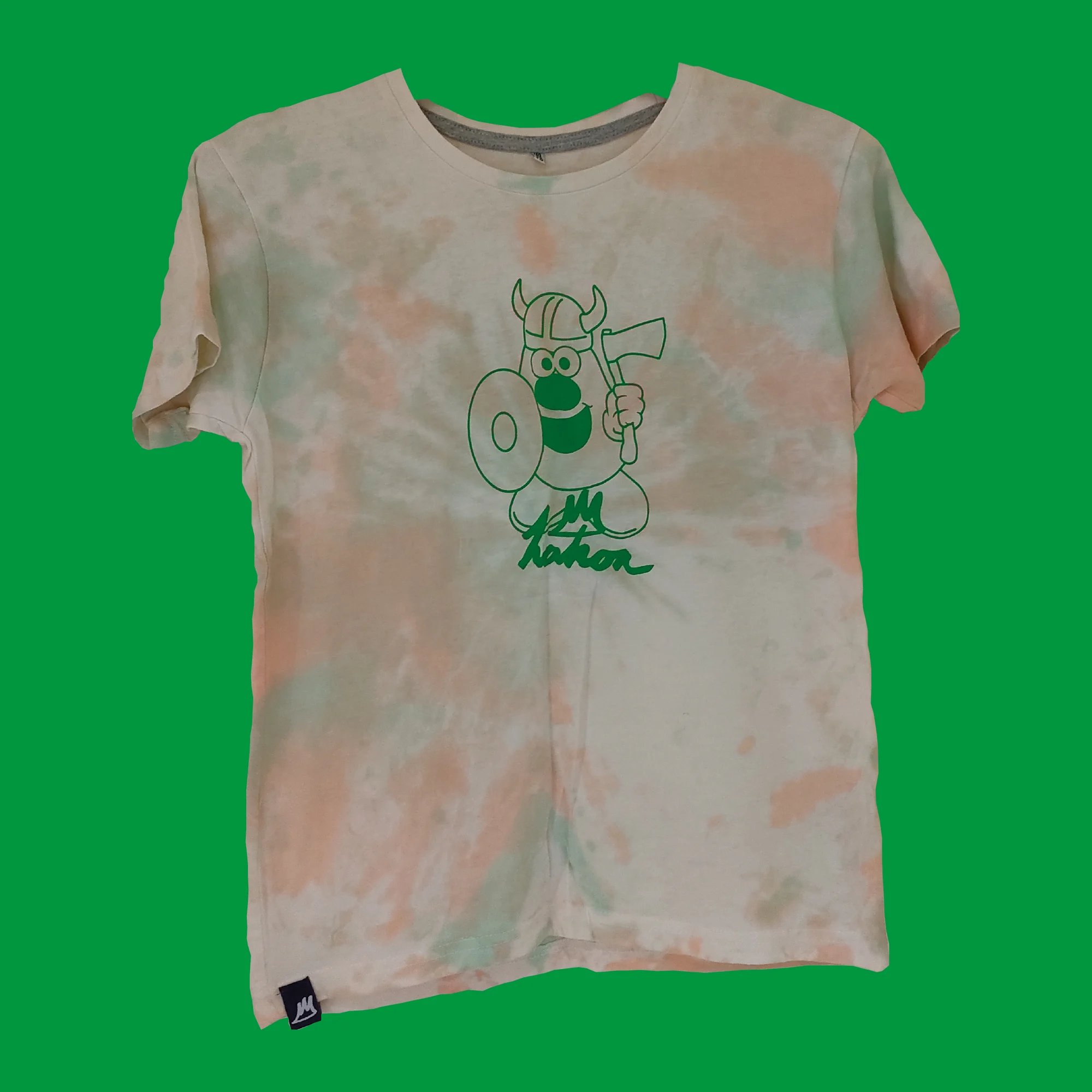 Made of 100% ring-spun Cotton Screen printed by hand in Glasgow using water based ink Dyed by hand with orange & green dye - patterns vary Made in Bangladesh